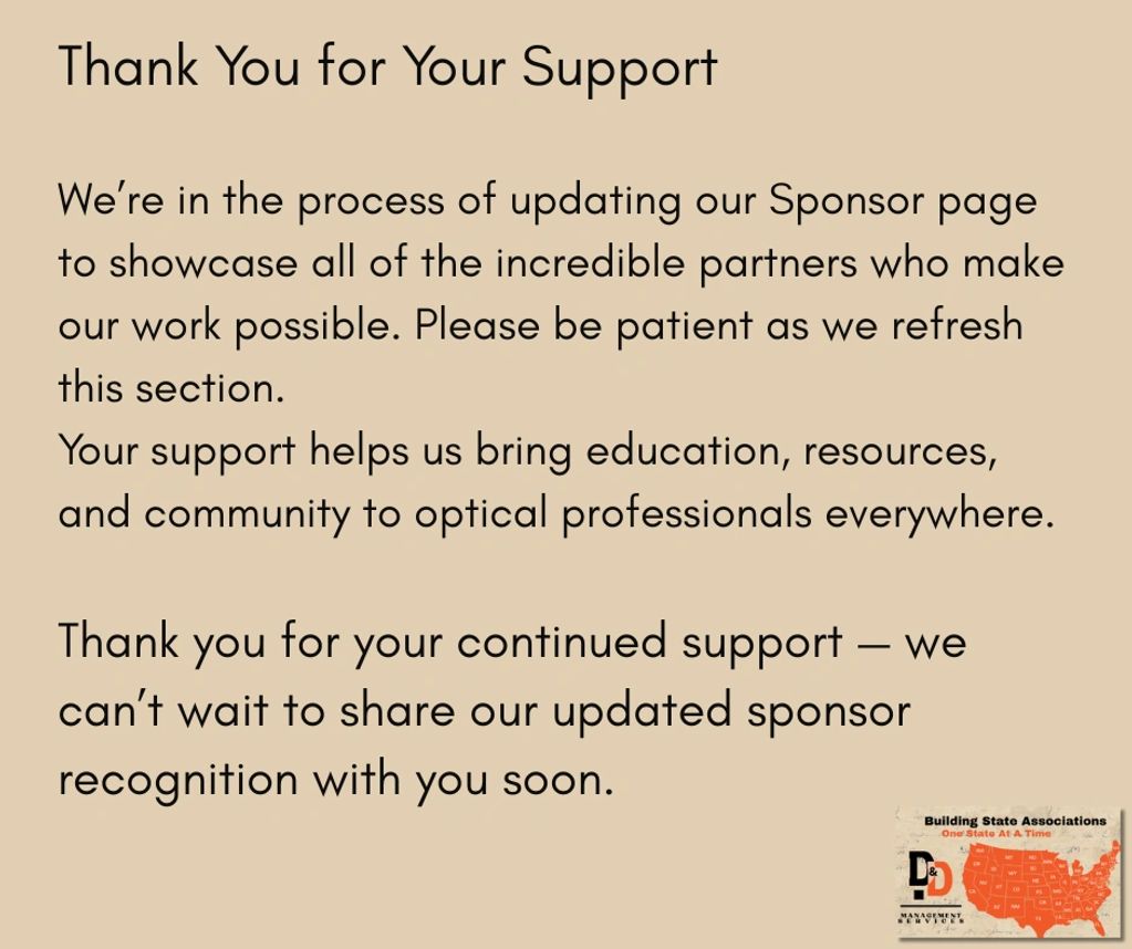 Your support helps us bring high-quality education, speakers, and resources to eye care professionals everywhere.
